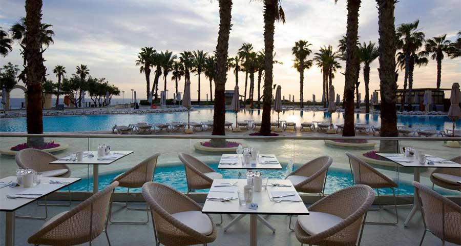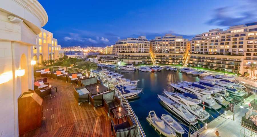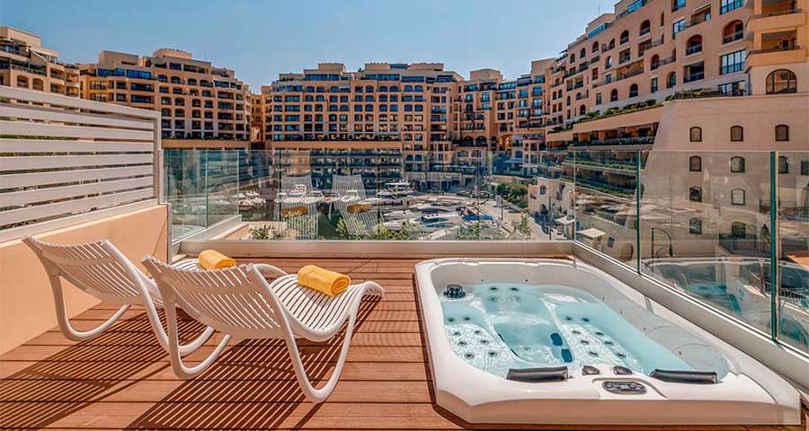 Set on the seafront in Saint Julian's, the Hilton Malta is a luxury five-star hotel that offers panoramic views of the Mediterranean Sea and a modern décor. On the site, guests will find a spa with indoor swimming pool, four seasonal outdoor pools, and two paddling pools for children. The spacious rooms at the Hotel Hilton Malta feature a large balcony overlooking sea or the Portomaso marina. All rooms at the hotel are air-conditioned and come with Wi-Fi access, a tea/coffee maker, and a satellite LCD TV. Some rooms offer access to the Business and Executive lounges. The hotel's Oceana Restaurant serves lunch and dinner by the pool, while the Blue Elephant specialises in Thai cuisine. Breakfast is served buffet style. The facilities include a tennis court and a fully equipped fitness centre. The Malta International Airport can be reached in 20 minutes from the hotel.