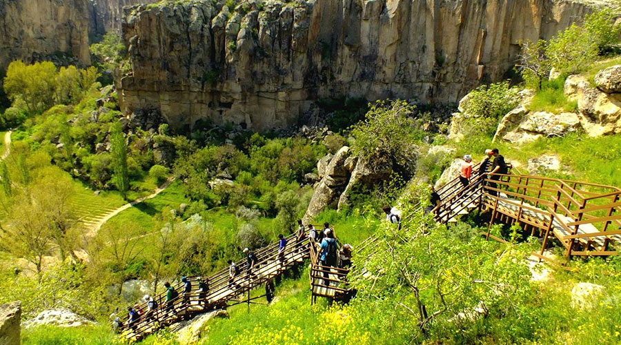 Ihlara Valley, which extends along its banks for its whole length, is the setting for a lovely eight-mile walk that starts in Ihlara Village and ends at Selime Manastr. Early spring is filled with romantic love melodies sung by bush nightingales, dancing flowers to the "oop oop" call of the ibibik or hoopoe bird, and the calming burble of water. There are historic churches across Cappadocia that feature murals that date back centuries. Belisrma offers lunchtime picnic areas and small eateries beside the river.The impressive Selime Monastery, thought to have been built in the eighth or ninth century BCE, may be seen when the valley widens. The 300 steps are worthwhile to climb in order to see inside.