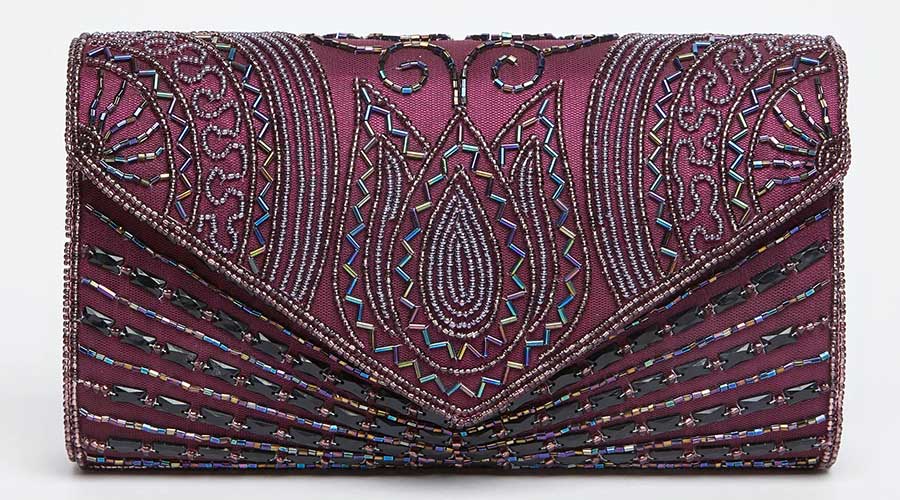 7. You’re bound to have this hand embellished purple plum clutch bag in your closet!
