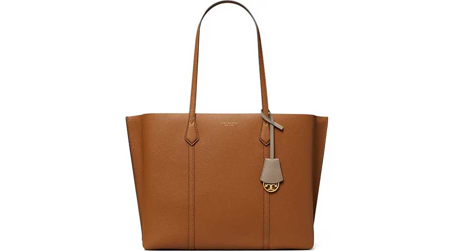 4. Three interior compartments enhance the appeal of this stylish and structured tote by Tory Burch made from richly pebbled leather.