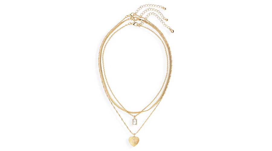 3. Instantly create an elegant layered effect with this set of gold tone-plated necklaces accented with a pair of eye-catching pendants.