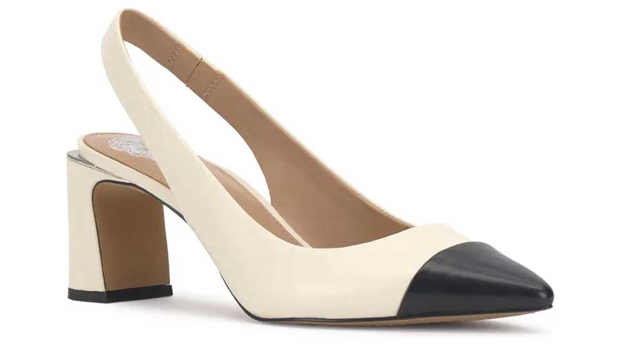 8. A pointy cap toe and block heel balance a sling back leather pump that will elevate your poised ensemble.