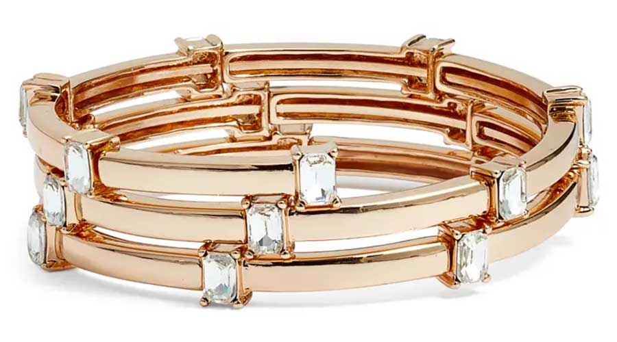 10. Faceted stones illuminate the coiled design of this statement-making gold tone cuff bracelet.