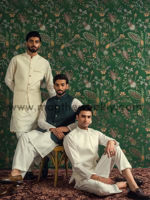 Classic Shalwar Kameez: This traditional outfit is a staple for men in style and is often paired with waistcoats in contrasting shades or a decent men scarf.