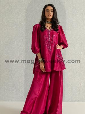 In traditional eastern wear, raw silk dresses are often crafted into classic silhouettes such as straight-cut kameez, flowing maxis, or structured A-line shirts paired with tailored trousers or churidars. The fabric’s subtle stiffness allows garments to hold their shape beautifully, giving each outfit a regal presence. Whether worn at festive gatherings, weddings, or formal dinners, raw silk strikes the perfect balance between understated and celebratory.