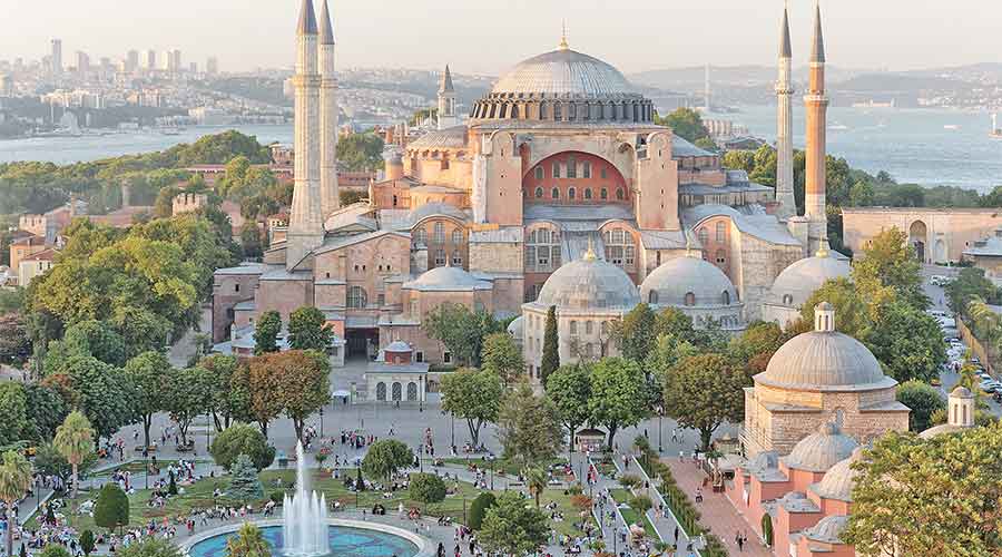 Hagia Sophia once a church was converted into a mosque. Standing under its 55m-high dome is exhilarating for you get an eyeful of mosaic depicting the Virgin and child and the Byzantine emperors Constantine and Justinian above the doorway as you exit the building via the Vestibule of Warriors.